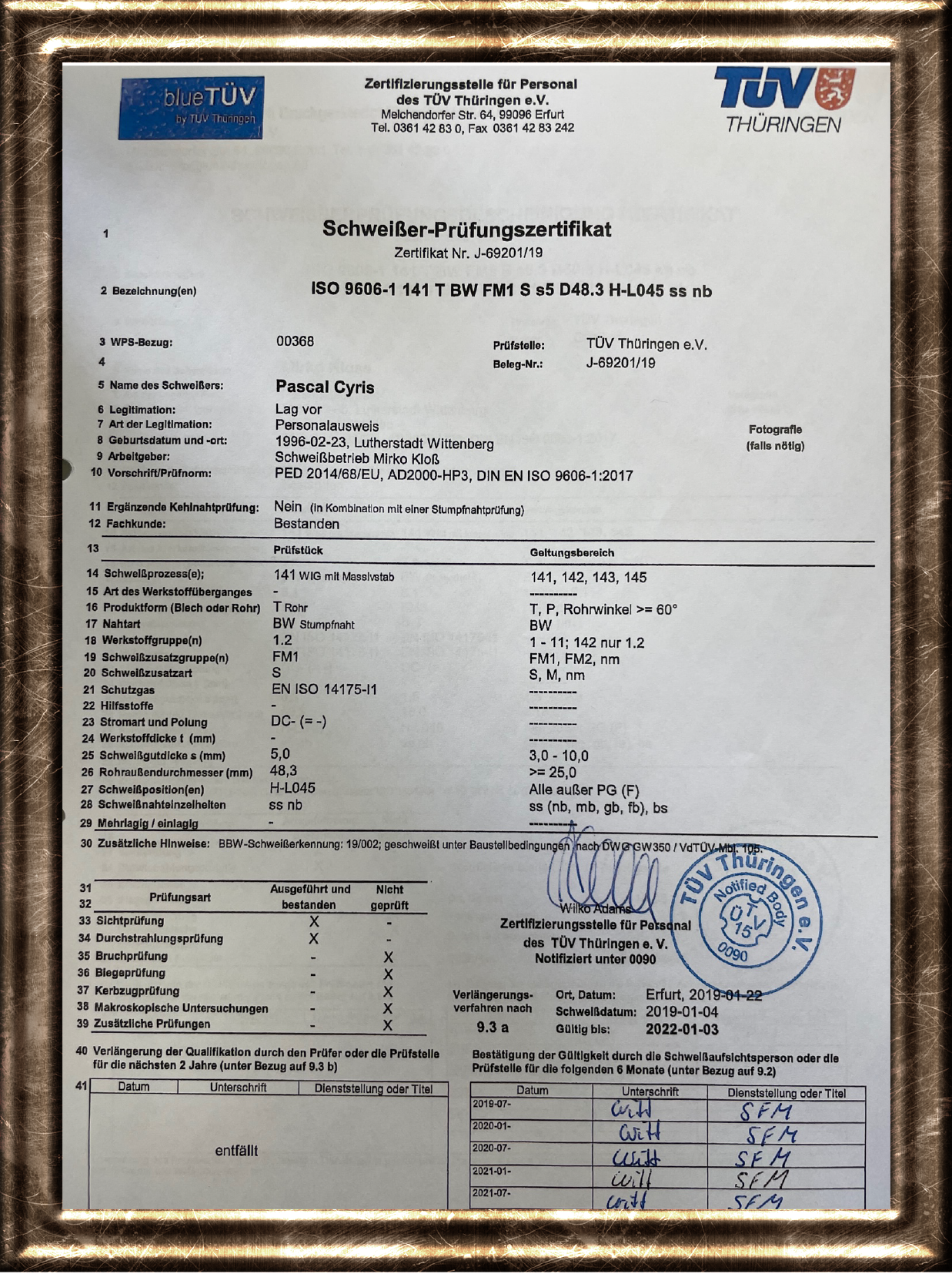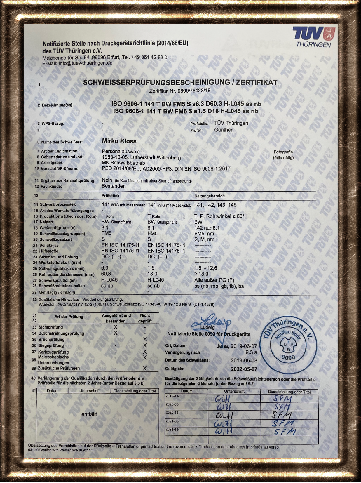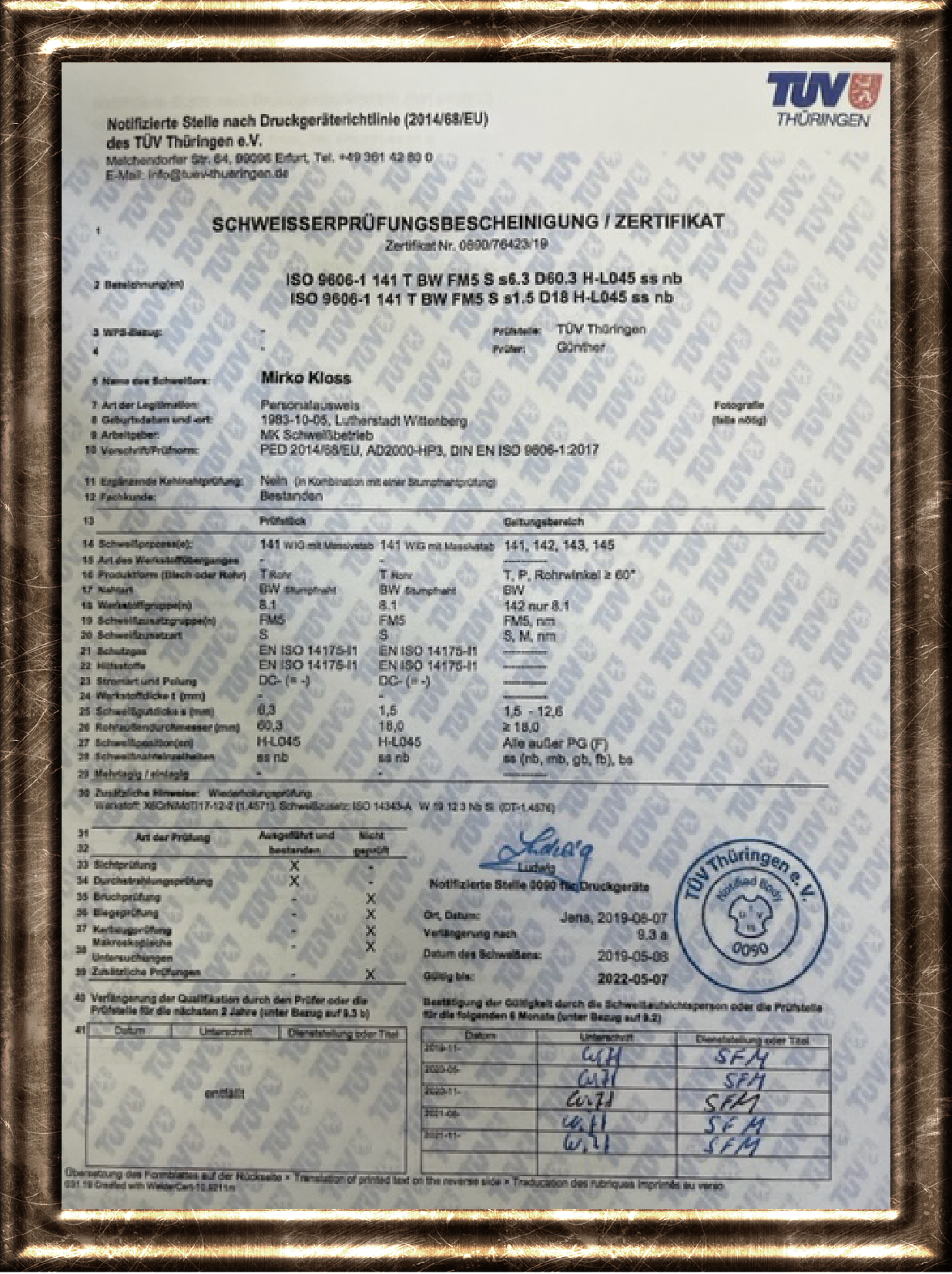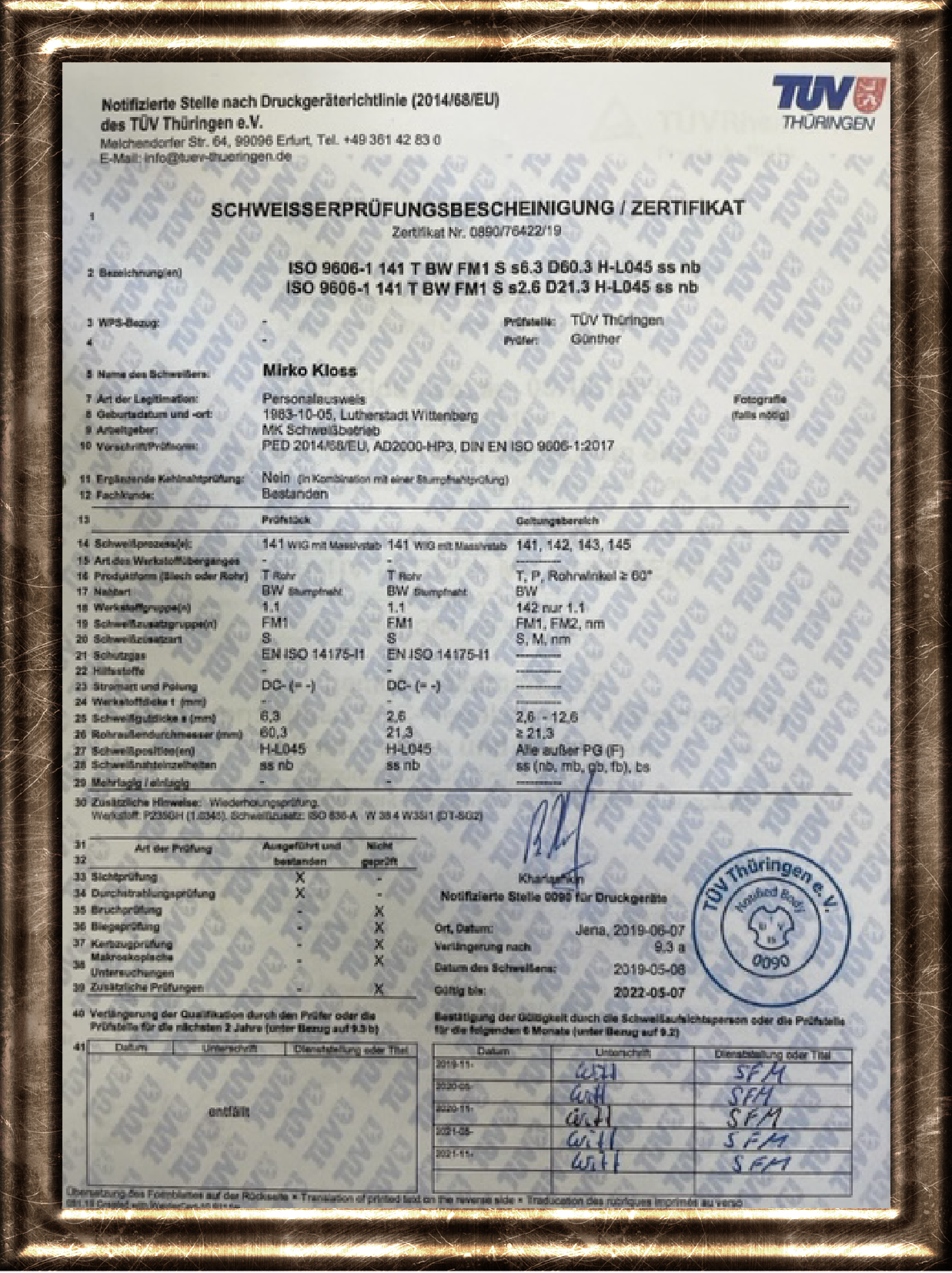 – Schweissen nach AD2000 (Stahl, Edelstahl)